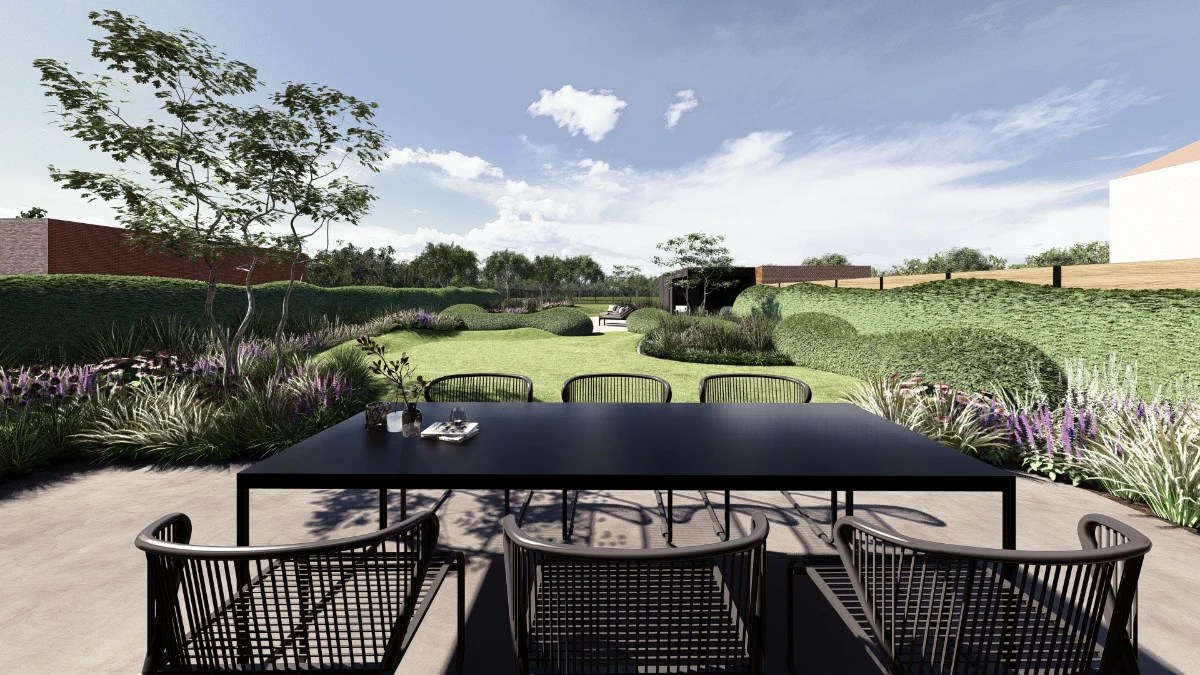 Deze nieuwbouw in Westerlo (Oevel) bestond uit één grote grasvlakte die snakte naar invulling. Voor dit bijzondere tuinproject lag de uitdaging in het creëren van een tuin die zowel praktisch als rustgevend is. De wens van de klant was duidelijk: een functioneel gedeelte vooraan de tuin voor gezin en viervoeter, en een ontspanningsgedeelte achteraan met zwembad die niet toegankelijk is voor de viervoeter. Beide zones kregen dus een eigen functie, maar moesten toch visueel en esthetisch mooi in elkaar overlopen. (voorziene uitvoering winter 2025/2026)